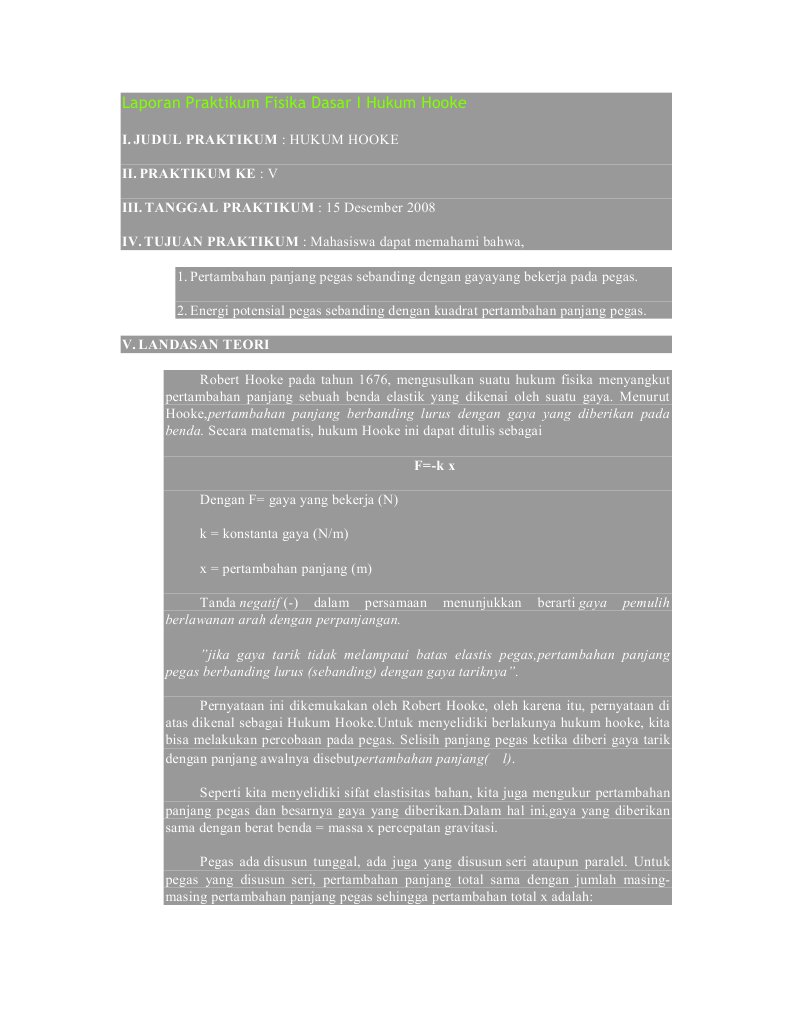 Savesave abstrak laporan praktikum fisika dasar ii for later. Praktikum fisika dasar i : Dasar kerja dari teropong panggung. Telah dilakukan praktikum pegas, dimana tujuan dari praktikum ini adalah menganalisis grafik hubungan antara gaya pegas dengan pertambahan panjang pegas dan menentukan besar konstanta elastisitas. Dalam fisika, pengukuran merupakan salah satu syarat yang tidak boleh ditinggalkan. Menentukan percepatan gravitasi dengan metode bandul matematis tujuan praktikum : Adanya laporan praktikum juga memudahkan kita untuk menyebarkan hasil praktikum kepada publik. Setiap alat ukur mempunyai batas ketelitian dan batas maksimum kemampuan mengukur (batas ukur). Abstrak adalah gambaran dari suatu makalah, karya tulis maupun skripsi secara singkat, padat dan mudah dipahami oleh pembaca. Mengetahui prinsip kerja gerak periodic 2. Bagus dwi candra npm : Laporan praktikum fisika dasar (laporan praktikum osiloskop). Laporan praktikum fisika dasar kalorimeter.